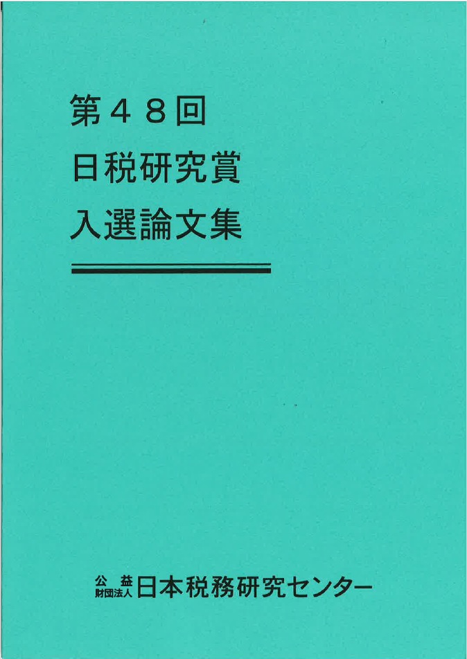 - 日税研究賞とは、租税等に関する研究の奨励、及び研究水準の向上に寄与することなどを目的とし、租税法、租税制度、租税論、租税行政、税理士制度及び税務会計に関する論文を募集し、すぐれた作品を選出顕彰しております。 日税研究賞授賞論文のうち「未公表論文」を収録した入選論文集を販売しております。 年1回(8月)