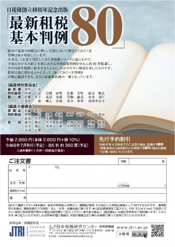| 内容 | 最新租税基本判例80 【先行予約割引受付中】※発刊次第発送いたします。 |